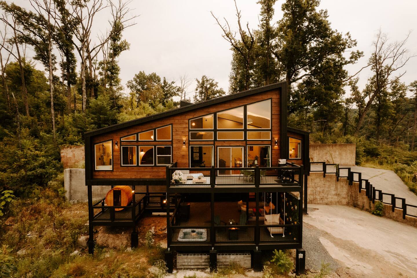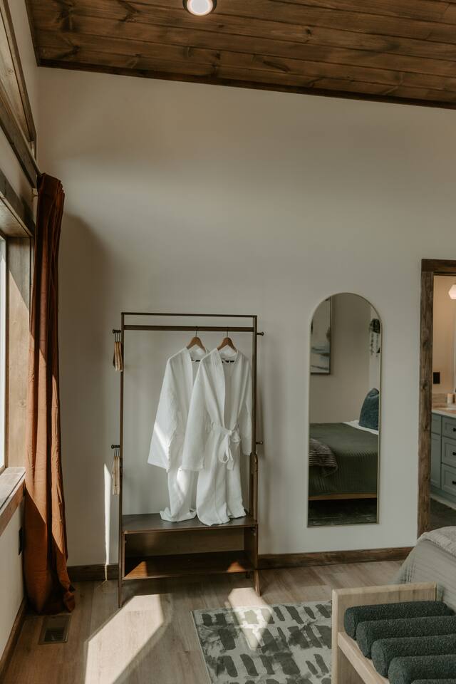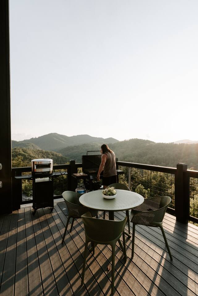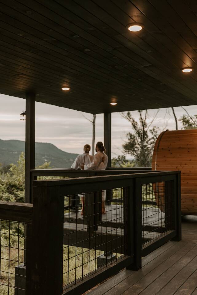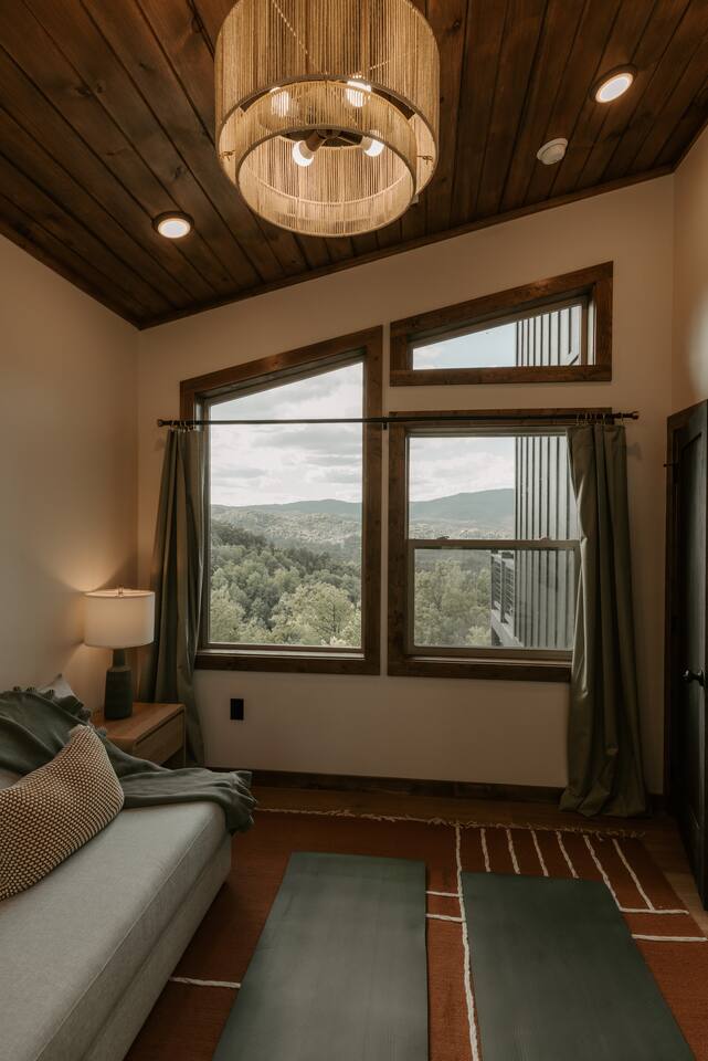 ✨ Highlights * Private barrel sauna, cold plunge (winterized during cold months), and hot tub for ultimate relaxation and recovery * Expansive mountain views from sunrise to starlight * Minimalist gym set up to keep your wellness routine strong * Hanging daybed + fire pit for cozy mountain evenings * Dog-friendly so your four-legged friend can enjoy the adventure too *Neighborhood includes a community pool and pickleball court 🛋 The Space Step inside calming interiors inspired by Japandi and organic modern design—clean lines, natural textures, and spa-like touches. * Bedroom 1: King bed with plush linens and serene design * Bedroom 2 / Theater Room: Queen fold-out bed + projector for cozy movie nights * Living Area: Thoughtful open design with record player, modern furnishings, and cozy ambiance Sleeps up to 4 guests comfortably. 🍴 Culinary & Gathering * Fully equipped kitchen + pizza oven & BBQ grill for culinary experiences * Indoor + outdoor dining options with a view 🌿 Wellness & Outdoors The lower deck is a private sanctuary: * Barrel sauna & cold plunge for contrast therapy * Hot tub overlooking the mountains * Fire pit with Adirondack seating * Hanging daybed for naps with a view 🎶 Entertainment & Extras * Theater room with projector * Record player for an old-school vibe * High-speed WiFi & workspace-friendly design 🌄 Location Perfectly located in Sevierville, minutes from the Smoky Mountains, hiking trails, and local attraction, yet tucked away enough to feel like your own private retreat. 📝 Additional Notes * Winterization: The cold is winterization and not available for using during periods or consistent low temperatures approx late November to approx March. *Mountain Drive: To enjoy the incredible Smoky Mountain views, the cabin is accessed via windy, elevated mountain roads. Most guests find the drive scenic and rewarding, but please be prepared if you’re not used to mountain roads. * Dog Friendly: We love hosting your pups! Please note the property is not fenced, we recommend keeping dogs leashed when outside for their safety. * Wildlife Awareness: The cabin is in a natural mountain setting where bear sightings are common. For your safety, we kindly ask that you do not leave food outside or in your vehicle. *Construction - The cabin is located in a development with new cabins are still being constructed. There is a possibility of construction vehicles and noise during the day. 💫 Why Guests Love Everwell Guests choose Everwell for more than just a stay, it’s a wellness experience in the mountains. Whether you’re soaking in the sauna after a hike, sipping tea by the fire pit, or enjoying a slow morning on the deck, this is a space to truly live well, stay well.